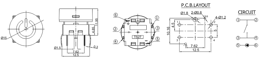 5. 帶燈輕觸開關TS27-1-BW-G-S